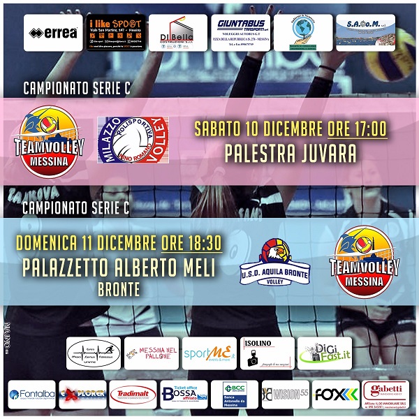 Domenica, invece, i ragazzi di coach Francesco Trimarchi saranno impegnati a Bronte (ore 18.30) contro la seconda forza del campionato. Dopo due sconfitte consecutive, i messinesi sono chiamati ad una prova d’orgoglio. Non sarà semplice contro un Bronte in salute, ma il Team Volley ha tutte le carte in regola per ben figurare.
