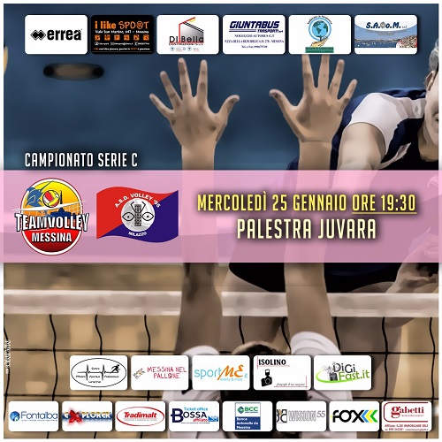 Dopo la sconfitta nella stracittadina con il Messina Volley, le ragazze del Team Volley Messina tornano sul taraflex della Juvara domani sera (mercoledì 25 gennaio ore 19.30) per affrontare l’Asd Volley 96 nel recupero della nona giornata che non si disputò lo scorso 7 gennaio causa allerta meteo.